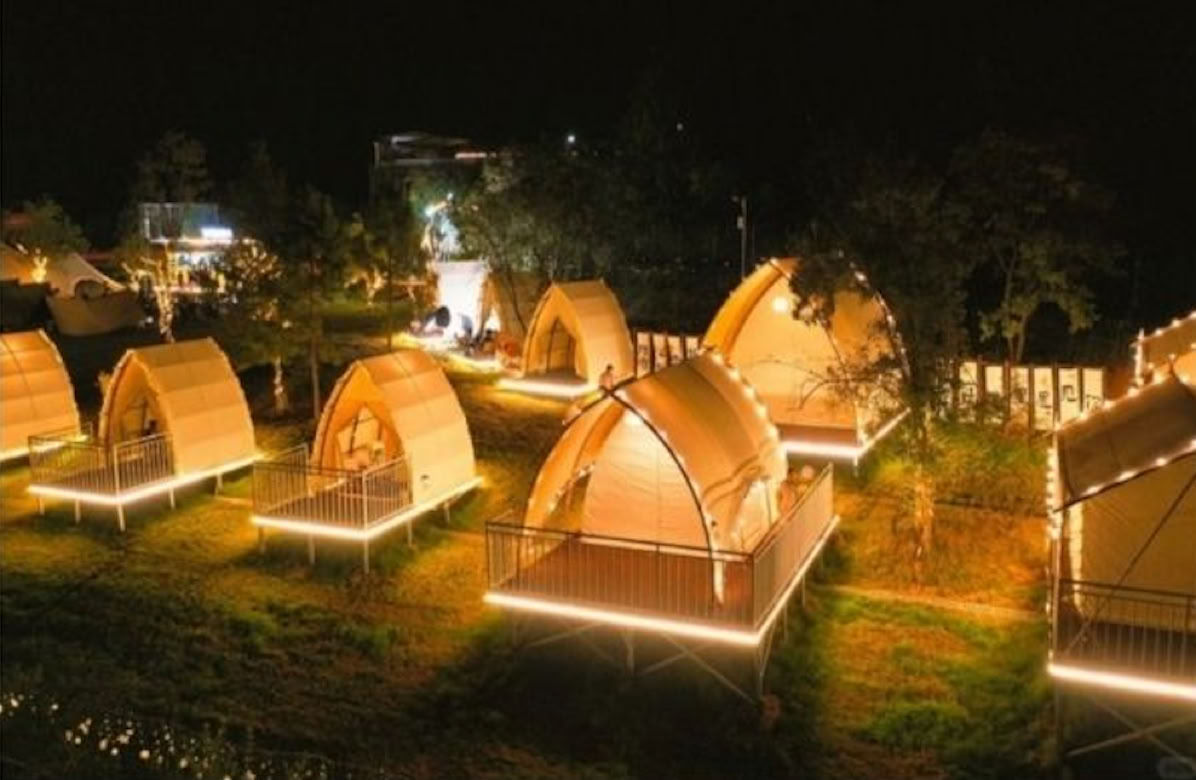 เต็นท์กระโจมติดแอร์ พร้อมที่นอนหนานุ่มและเฟอร์นิเจอร์ครบครัน สะดวกสบายที่สุด